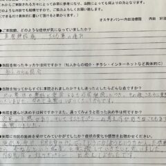 治療を重ねるたびに(数回ほどですが)症状が改善され今では楽しく登校しています。治療の目安が明確で痛みや症状の原因がピンポイントでわかります。体だけでなく心も健康にして下さり、いつもありがとうございます。